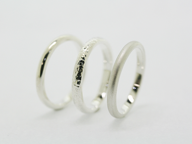 輝きが苦手な方は槌目を打った後にマット仕上げにすることも